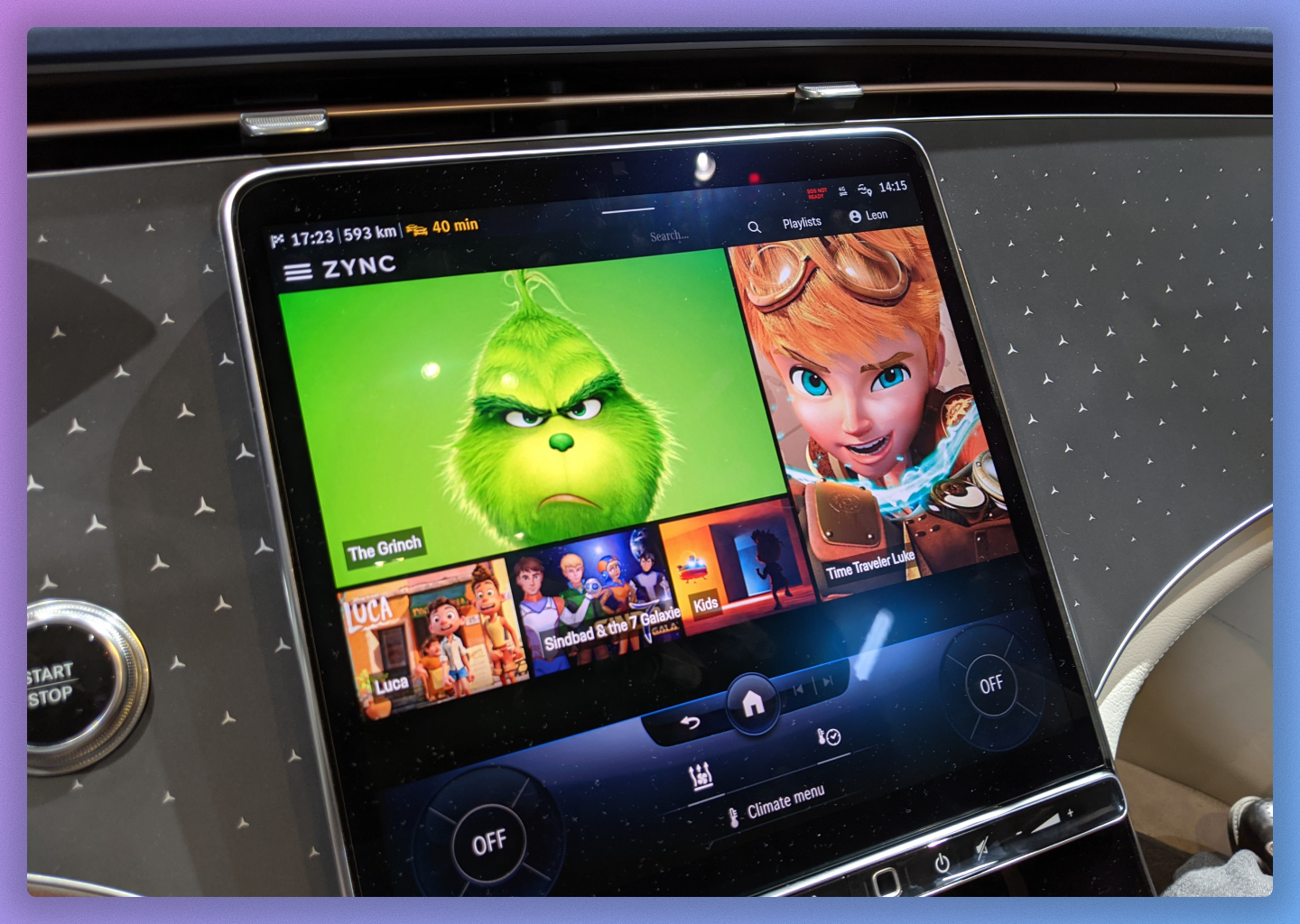 Zync is an innovative company specialising in bringing entertainment experiences into automobiles. Their technology integrates streaming entertainment services directly into vehicle infotainment systems, creating a seamless and immersive entertainment experience for passengers. Zync has achieved a significant milestone by launching their in-car entertainment platform in Mercedes-Benz vehicles for the first time. This partnership represents a major step forward in automotive entertainment technology, allowing Mercedes passengers to enjoy premium content while on the road.